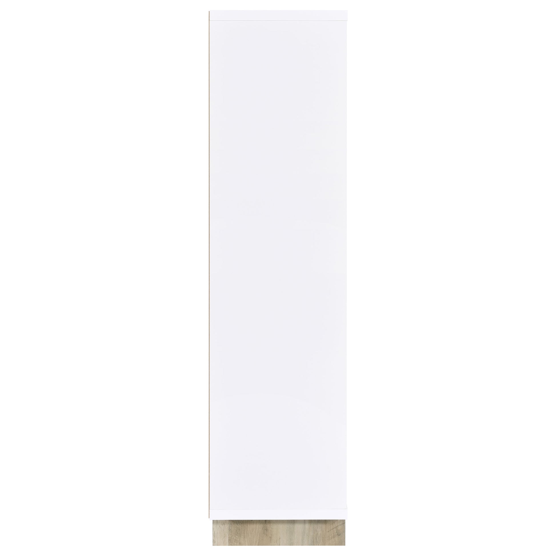 • Two-tone finish creates depth with a brown wood backing and legs and white sides and shelves