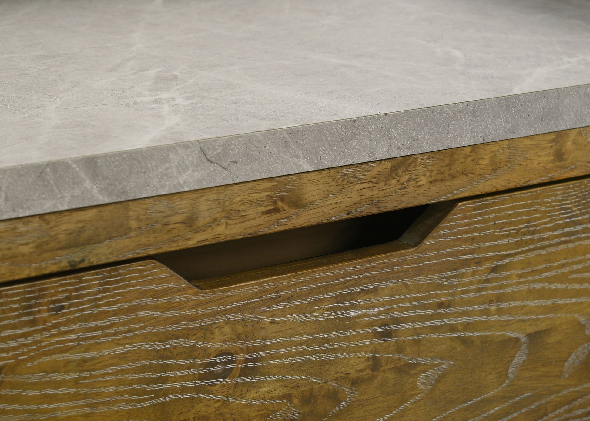 • One-drawer nightstand blends rustic texture with modern functionality and clean lines