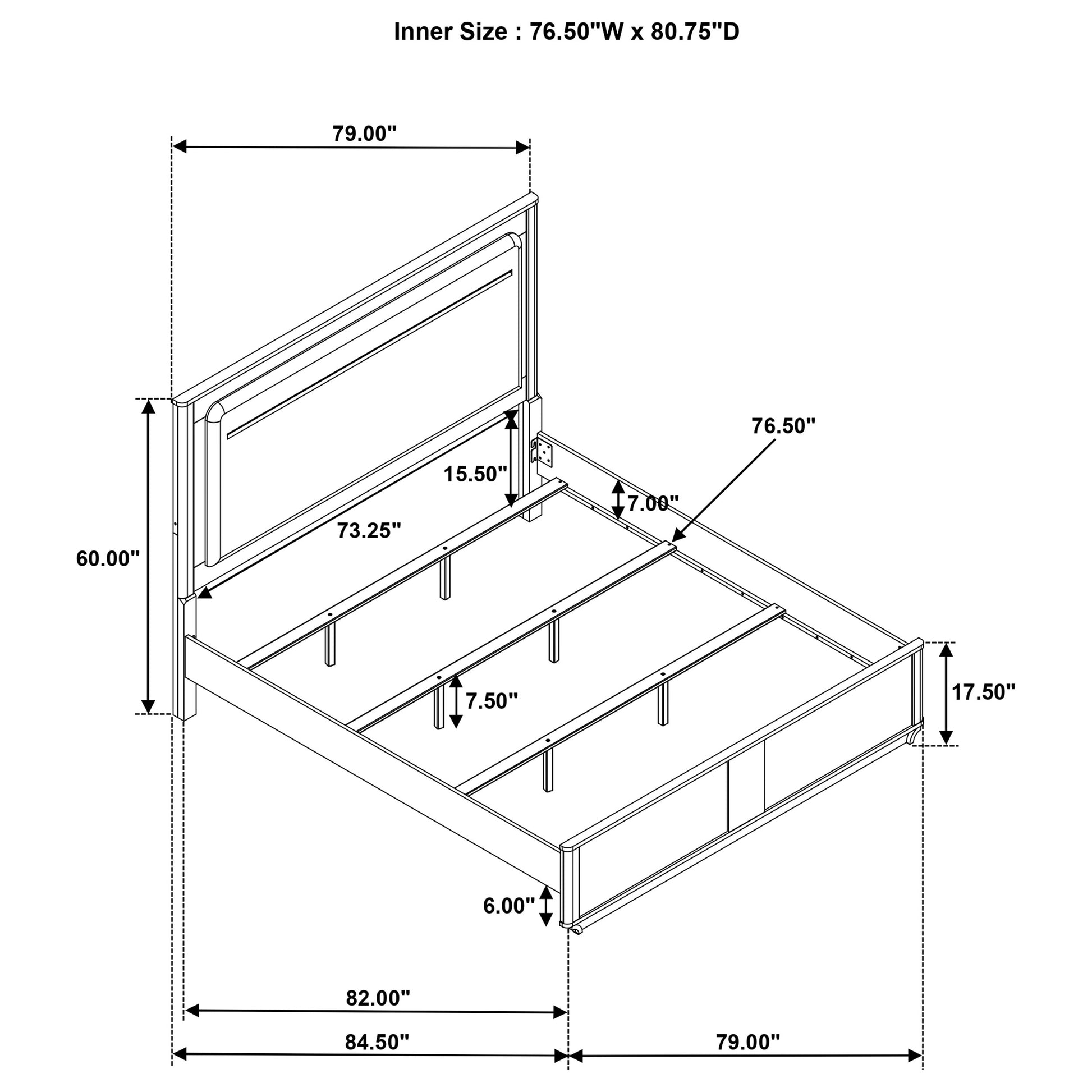 • Low panel footboard keeps the profile clean while rails hold bedding neatly in place