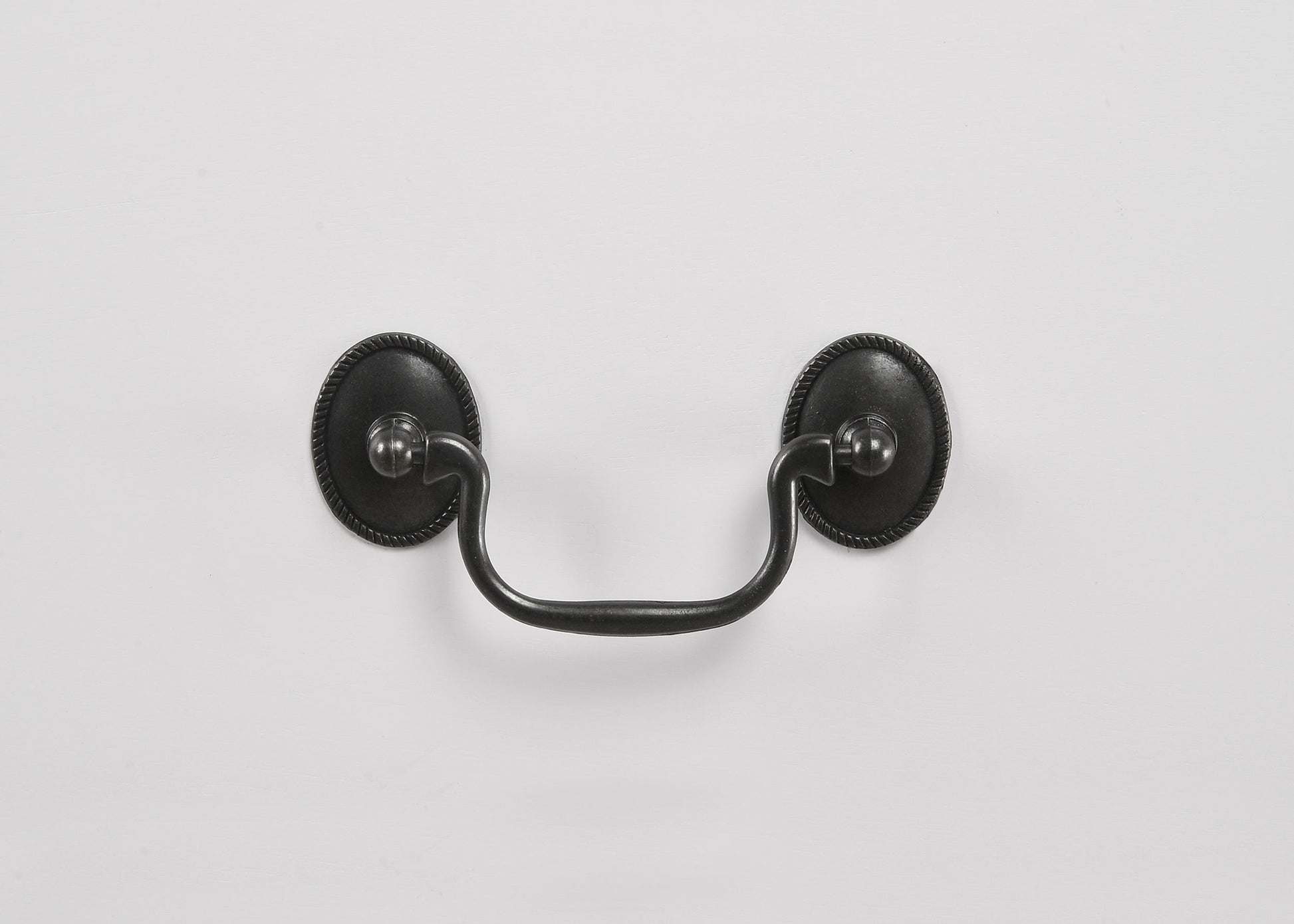 • Dark hanging pulls add contrast to the bright white drawer fronts