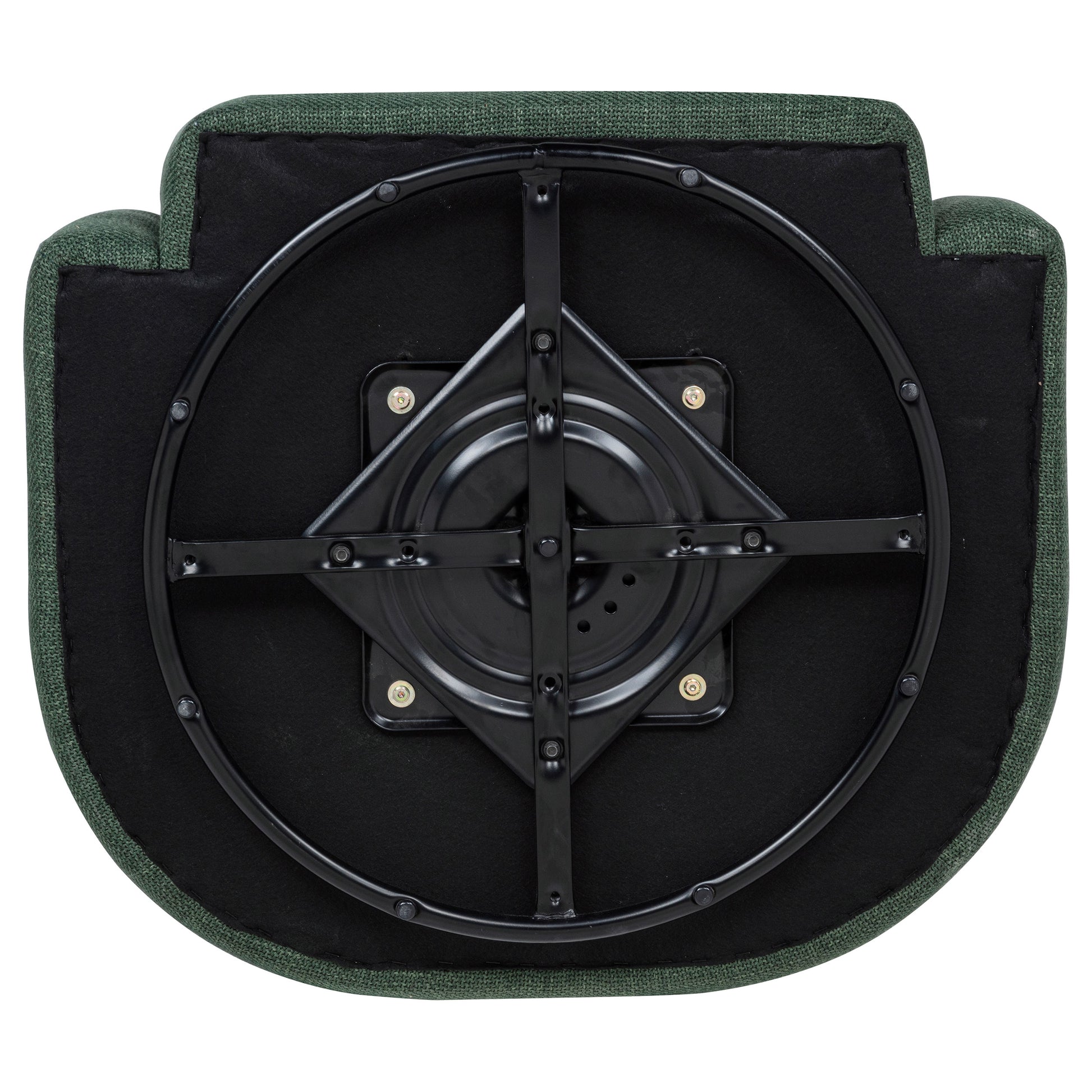 • Green fabric upholstery adds organic color and soft woven texture to the frame