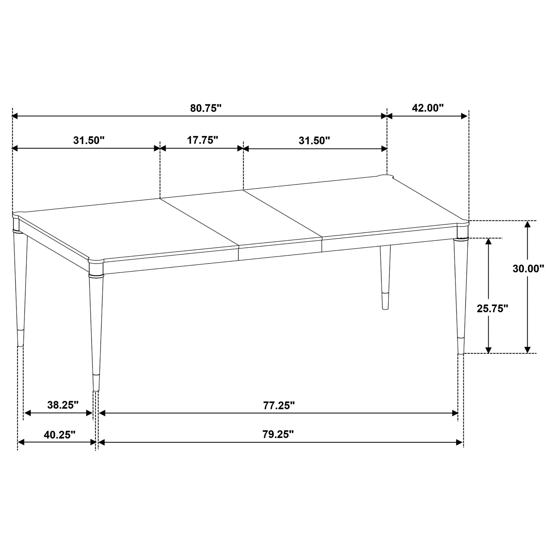 • Extendable table adjusts from 63 to 81 inches with a removable leaf