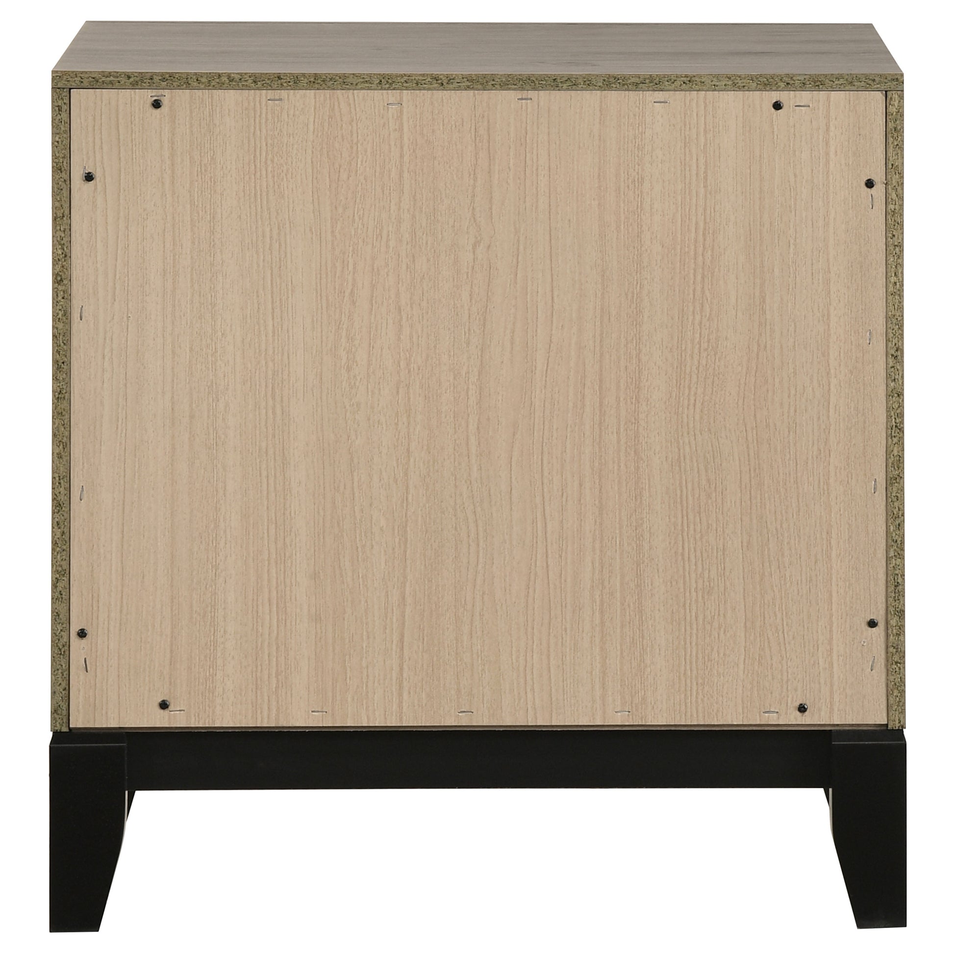 Nightstand brings bedside order with two drawers and groove detailing that adds quiet texture across a clean front. Nickel hardware keeps access simple, while the top holds a lamp, books, and daily essentials. Crafted with rubberwood and engineered wood finished in durable laminate veneer, this bedside table keeps routines calm from lights out to morning.