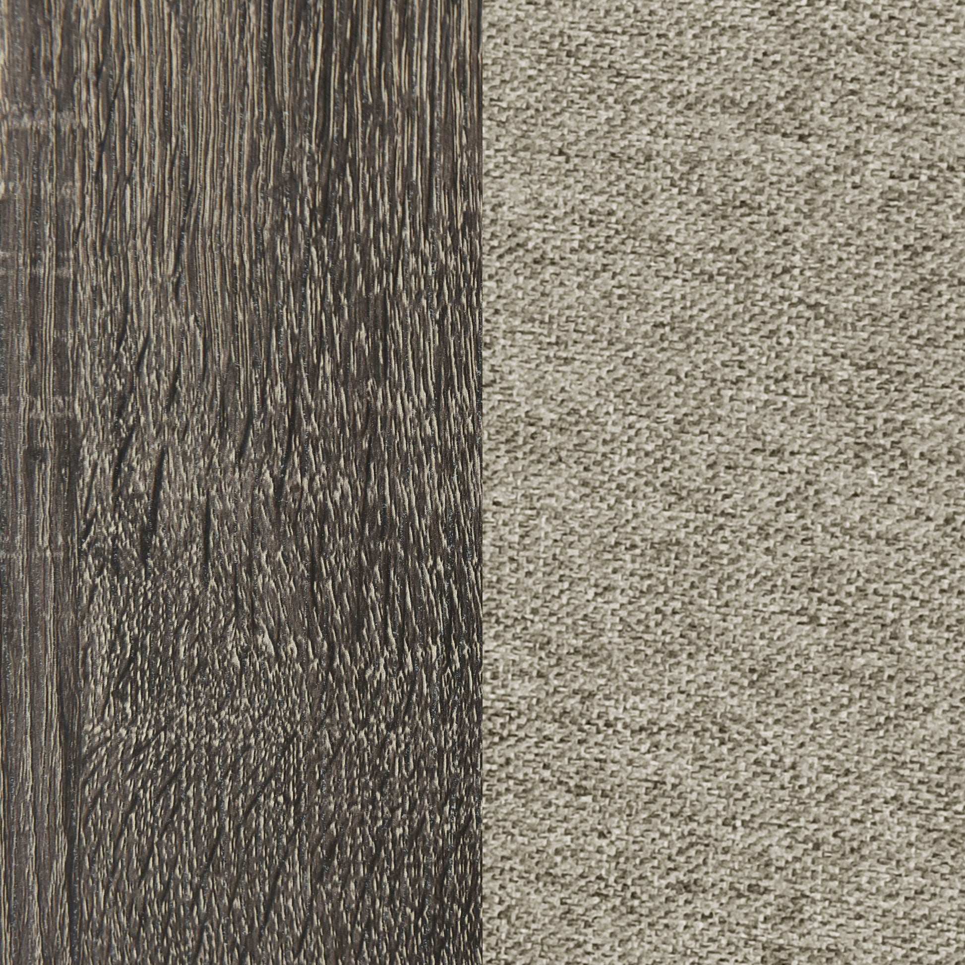 Create your ideal bedroom ambiance with the fresh, casual style of this transitional bedroom set. It features engineered wood construction with durable laminate veneer, creating a stylish look with its brown oak wood grain finish. The set is clean lined, centered on a bed with a tall squared headboard padded with foam and upholstered in tan fabric, while the low footboard keeps the room feeling open and airy. Coordinating storage pieces add generous drawer space and roomy tops for organization and personal decor.
